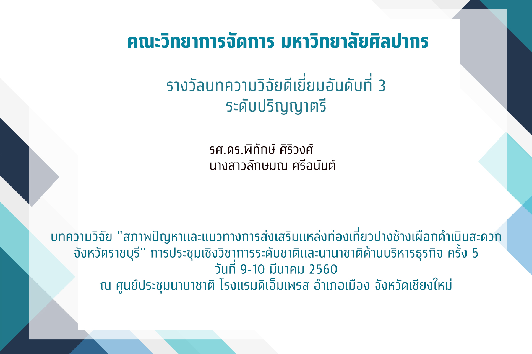 ที่ได้รับรางวัล บทความวิจัยดีเยี่ยมอันดับที่ 3
