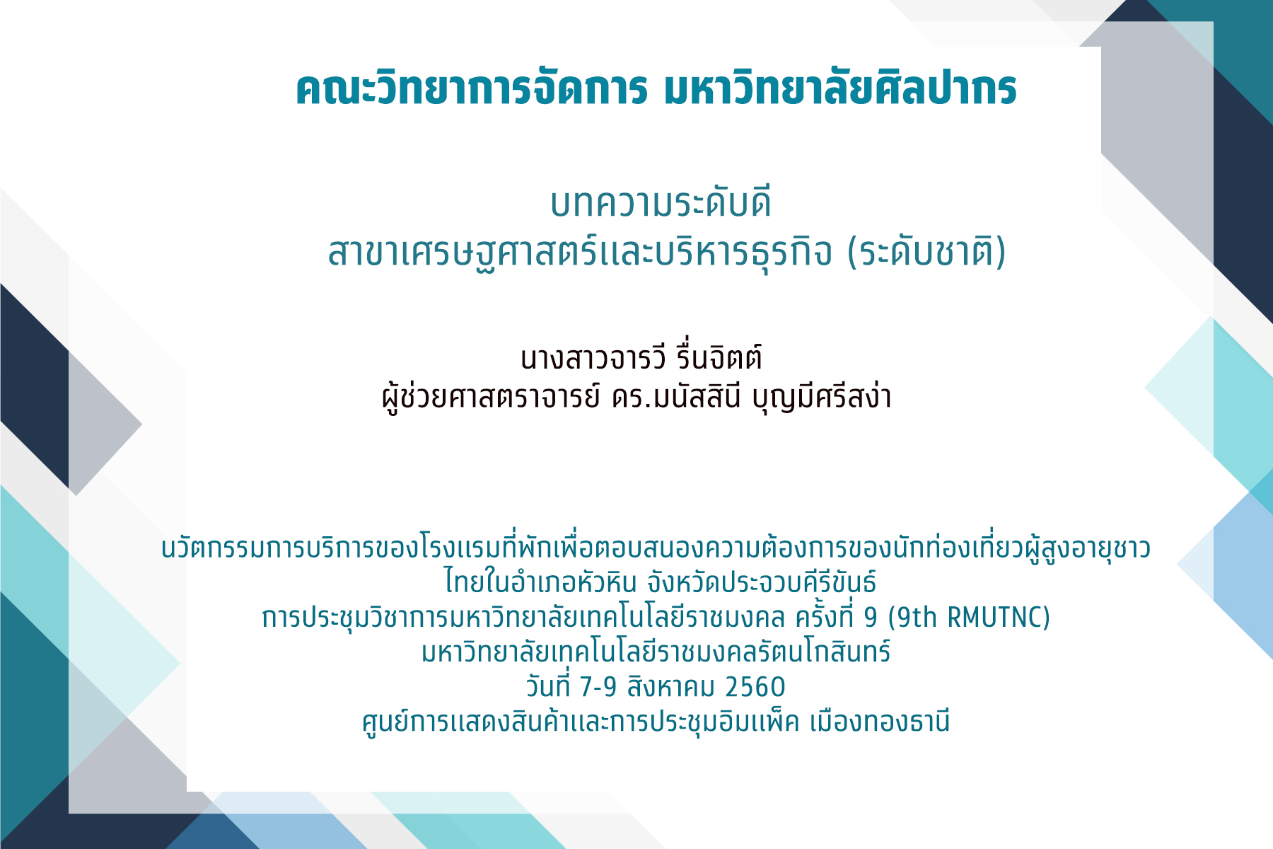 ที่ได้รับรางวัล บทความระดับดี สาขาเศรษฐศาสดร์และบริหารธุกิจ (ระดับชาติ)